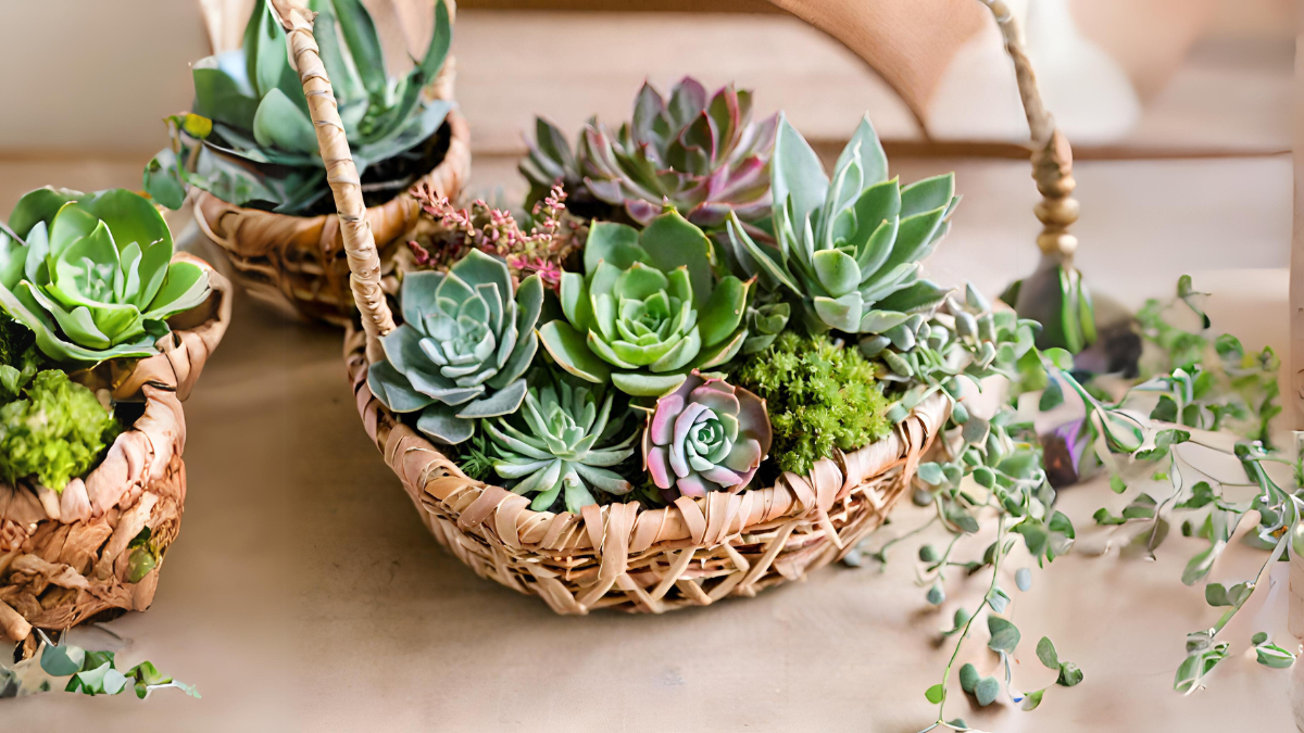 Arranjo de Suculentas na Cesta: Uma Combinação Encantadora de Beleza e Natureza