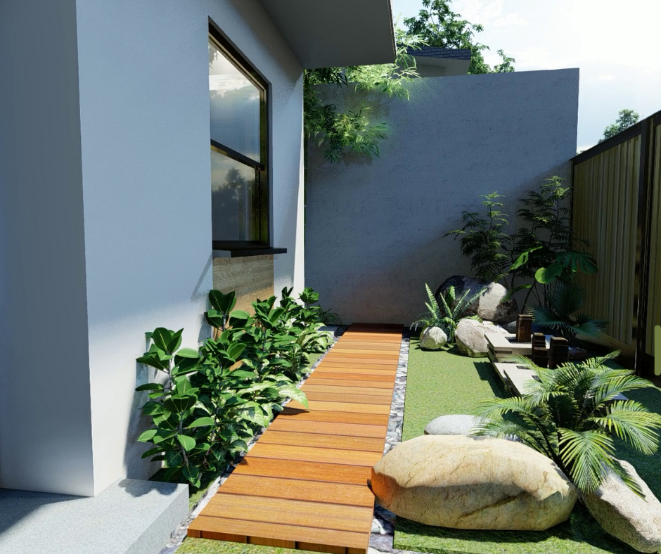 - Elementos: Um pequeno espelho d’água, uma fonte suave, um banco confortável escondido em um canto sombrio, talvez até um deck para ioga ou meditação. A privacidade será um fator chave.