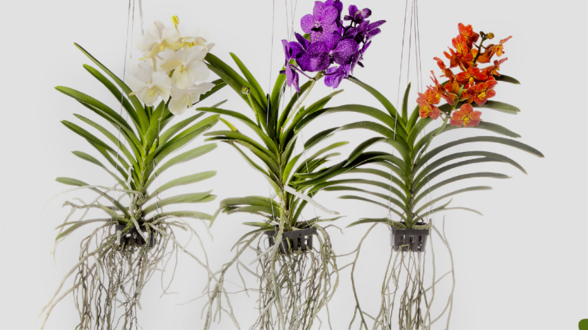 Nativas do Sudeste Asiático, as Vandas são o auge do cultivo de orquídeas para climas quentes e úmidos. Elas são famosas por suas flores grandes, em tons vibrantes de azul, roxo e laranja (cores raras em outros gêneros) e por suas raízes aéreas espetaculares.