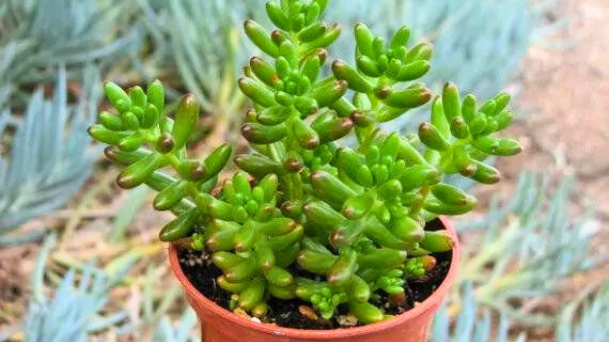 A linda “Sedum Rubrotinctum”, conhecida popularmente como Suculenta Dedinho (ou Dedinho de Moça), é uma das variedades de suculentas mais utilizadas para ornamentação, ficando bem tanto em canteiros quanto em vasos.
